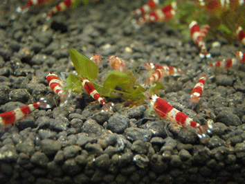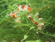 11月18日 11月5日に産卵箱に隔離したクリスタルレッドが17日に稚エビを産みました.ご苦労さまでした.もう少し,隔離の時間を短くしてあげないといけませんね.稚エビは15匹くらいは見えました.親エビだけ出して,あとはこのまま1カ月くらい(いつまで我慢できるかですが)産卵箱に入れたままにしておくつもりです.現在,抱卵は赤が2匹,黒が3匹(くらい)だと思います.水温が低いのか,抱卵が減りました.現在の水温は24度くらいです.