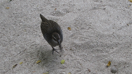 バンディド・レイルです.ウズラの仲間らしいですが,餌をあげると,食べに来るので可愛い鳥です.糞なども見かけませんでした(どうしているんでしょ?).トレジャーアイランドリゾートのHPによると,「至上死滅に近いこのうずら科の鳥はトレジャー島に10年前に連れて来られました。とても臆病なこの鳥は島の庭の木々をぬって歩き回っています。時には足洗いようの洗面器の水に飛び込み水浴びなどしてお客様をびっくりさせたりもしてます。非常に人懐こい鳥ですのでパンくずなどをやるとすぐに友達になれます。」と書かれています.この他,オウムを見かけました.木にとまって,大きな声で鳴いていました.ママヌザ諸島の中では1番最初に環境保護を支持した島だそうですが,まさに,みんなで守っているのが良くわかります.