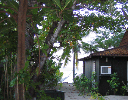 これは,ブレの写真です.実はあんまりちゃんとブレを撮った写真がありませんでした.ここではリゾートホテルと言っても,ブレという小さな建物がホテルの部屋になっています.ブレの中はエアコンがばっちりきいていますし,バストイレも付いています.大家族にはベットも増やしてくれました.しかも,子供は(2人に2人まで)無料と言うことです.これによって,子供料金がかなり安く設定できるわけです.オーストラリアやニュージーランドの家族連れが多いのは,安く上がるからだと思います.